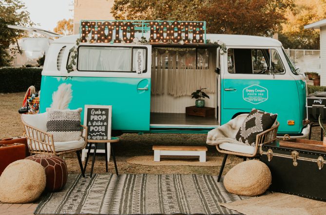 Founded in 2017 by a love for photography, vintage Volkswagens, and sharing smiles for miles, we created Happy Camper Photo Bus. When not serving events, we can be found enjoying family time with our baby girl, Sunny, and lab mix, Finn or cruising PCH in search of coffee, tacos and sunsets. We can't wait to meet you and provide an unforgettable experience for your guests!