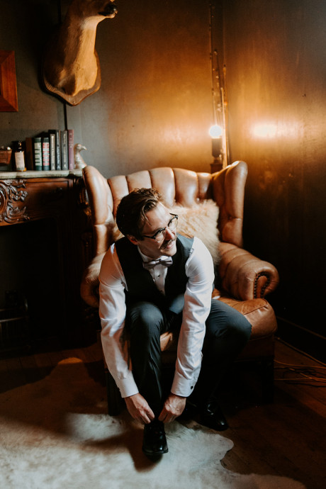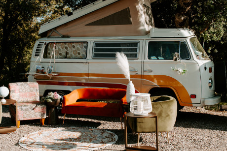 After a year of living on the road traveling in a VW bus, we wanted a venue that had a “cabin in the woods” feel.